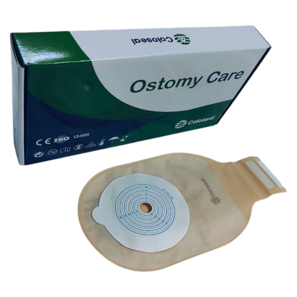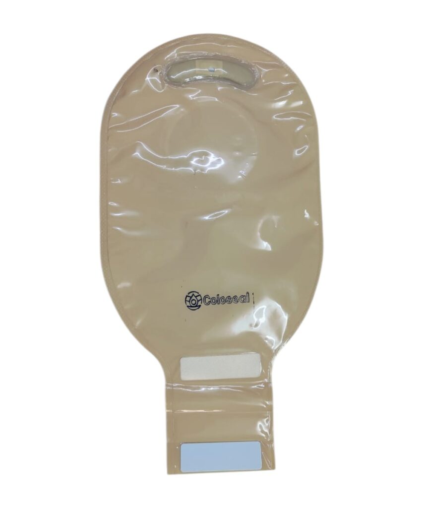 A Single-Piece Colostomy Bags are ideal for people whose stoma output is semi-formed to formed are designed to be opened at the bottom when emptying.. Drainable ostomy pouch and a Lock n Roll closure. This standard wears a drainable ostomy pouch that has an odor barrier film and Comfort Wear panel on the body side for added comfort and peace of mind. The double Lock n Roll closure system is easy to use, empty and clean. To close, simply roll the pouch tail three times in one direction and double seal on 4th time fold. To empty, pinch the sides of the tail pouch and control the flow of the output. To clean, wipe the pouch tail with a damp cloth.